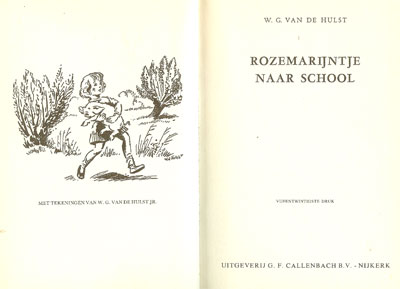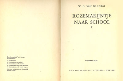Meisjesboek om zelf te lezen, 8-12 jaar. Voorleesboek voor jongere kinderen. Bundeling van de vijf afzonderlijke delen: 1 Rozemarijntje; 2 Rozemarijntje naar school; 3 Rozemarijntje en de oude juffrouw; 4 Rozemarijntje en Rooie Pier; 5 Rozemarijntje en de zwarte jongen. (De oorspronkelijke volgorde is omgewisseld. Respectievelijke uitgave: 1933, 1934, 1954, 1944, 1949). Uitgegeven bij G.F. Callenbach N.V. - Nijkerk. (Nb: 'Rozemarijntje en de zwarte jongen' verscheen weliswaar 5 jaar eerder dan ' Rozemarijntje en de oude juffrouw' maar wordt steeds als 5e deel aangegeven, ook in de Rozemarijntje-omnibussen)
