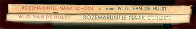 Kopsnedekleur rood, ronde ruggetjes, andere belettering achterplat vanaf 12e druk, isbn vanaf de 13e druk