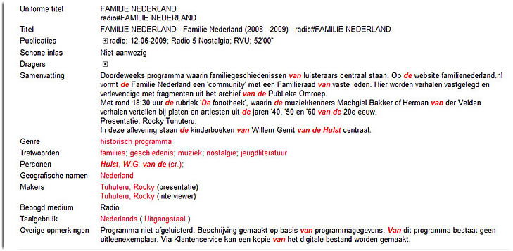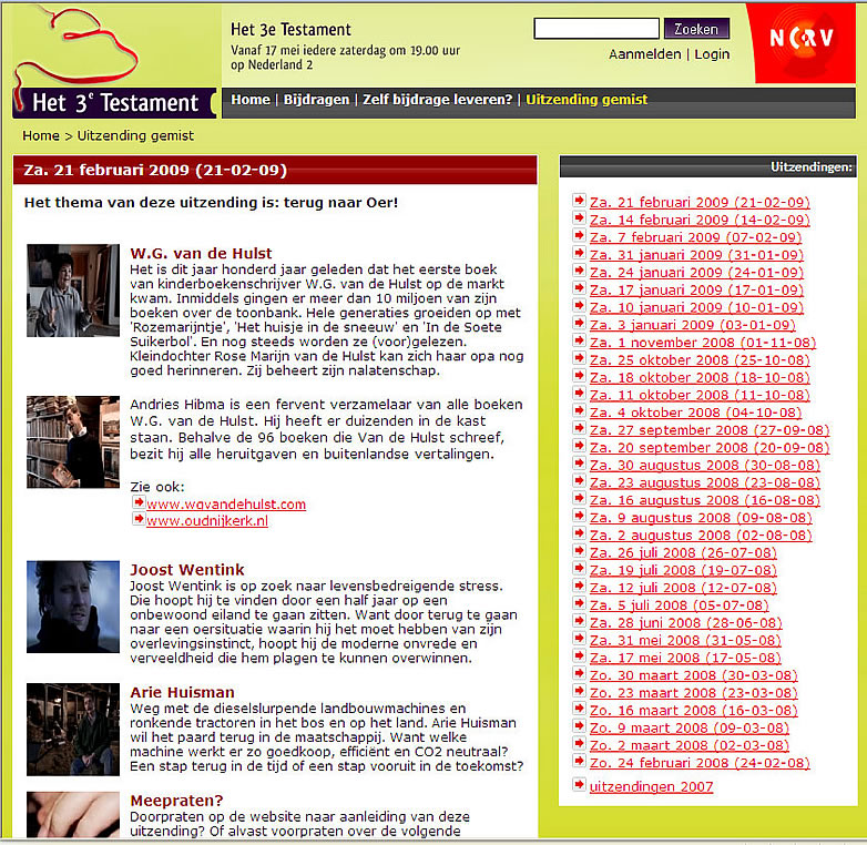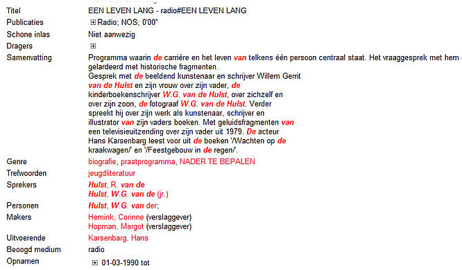 | Radio | 2009 12 juni RVU - Familie Nederland - Kinderboeken van W.G. van de Hulst sr | ||||||