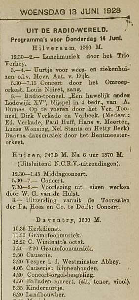 | Radio | 1928 - NCRV 13 juni - 19.30-20.00u. | ||||||