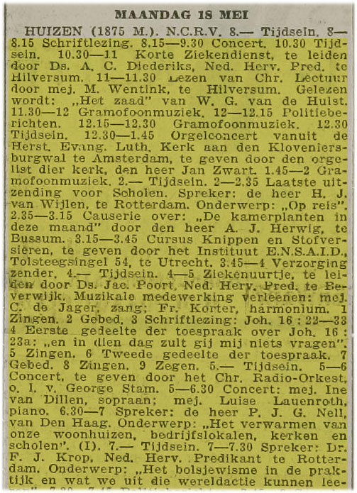| Radio | 1931 - NCRV 18 mei 11.00-11.30 uur | ||||||