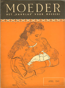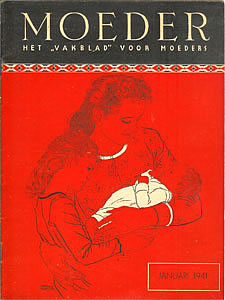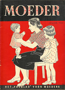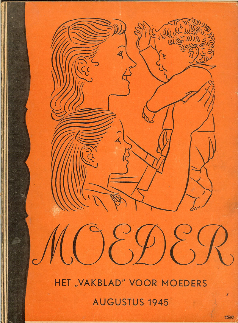 Vanaf augustus 1945 verschijnt Moeder weer, de eerste 5 uitgaven met dezelfde hier afgebeelde omslagillustratie van Herman Dijkstra.