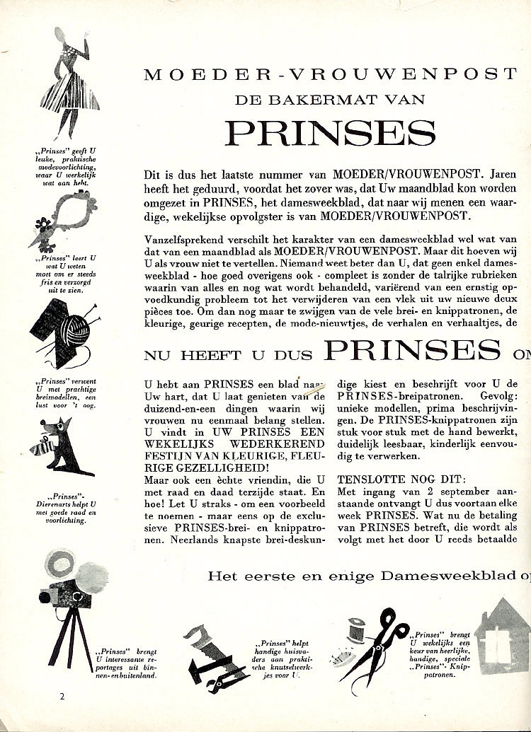 | In augustus 1961 wordt Moeder-Vrouwenpost opgeheven en wordt voortgezet als het Weekblad (!) Prinses. Daarin zijn géén voorleesvertellingen van W.G. van de Hulst meer opgenomen. |