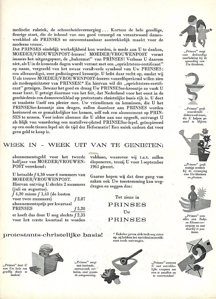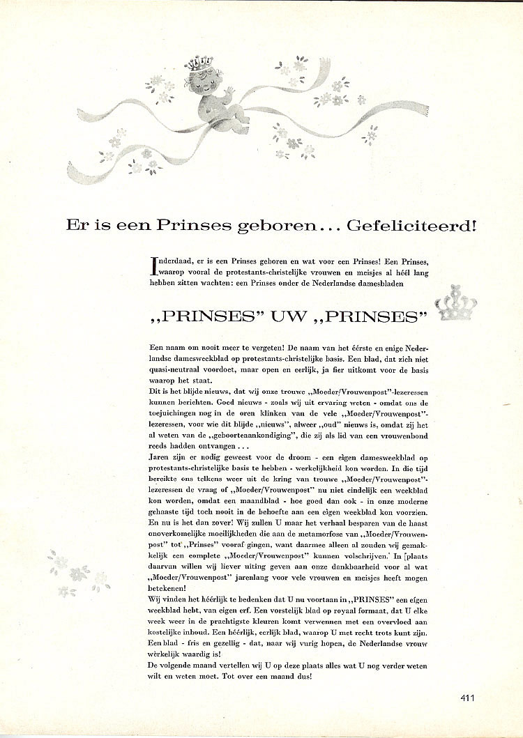 De vooraankondiging in Moeder-Vrouwenpost juli 1961, pag. 411 |